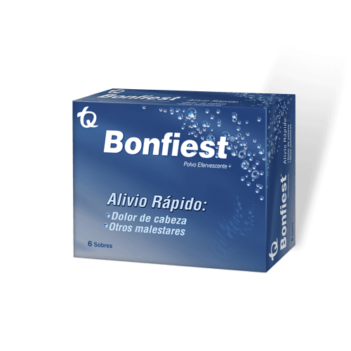 Bonfiest Plus® es un producto diseñado especialmente para ti. Su fórmula en polvo efervescente de rápida y fácil disolución te brinda un alivio completo y efectivo de esos molestos síntomas que deja el chuchaqui.